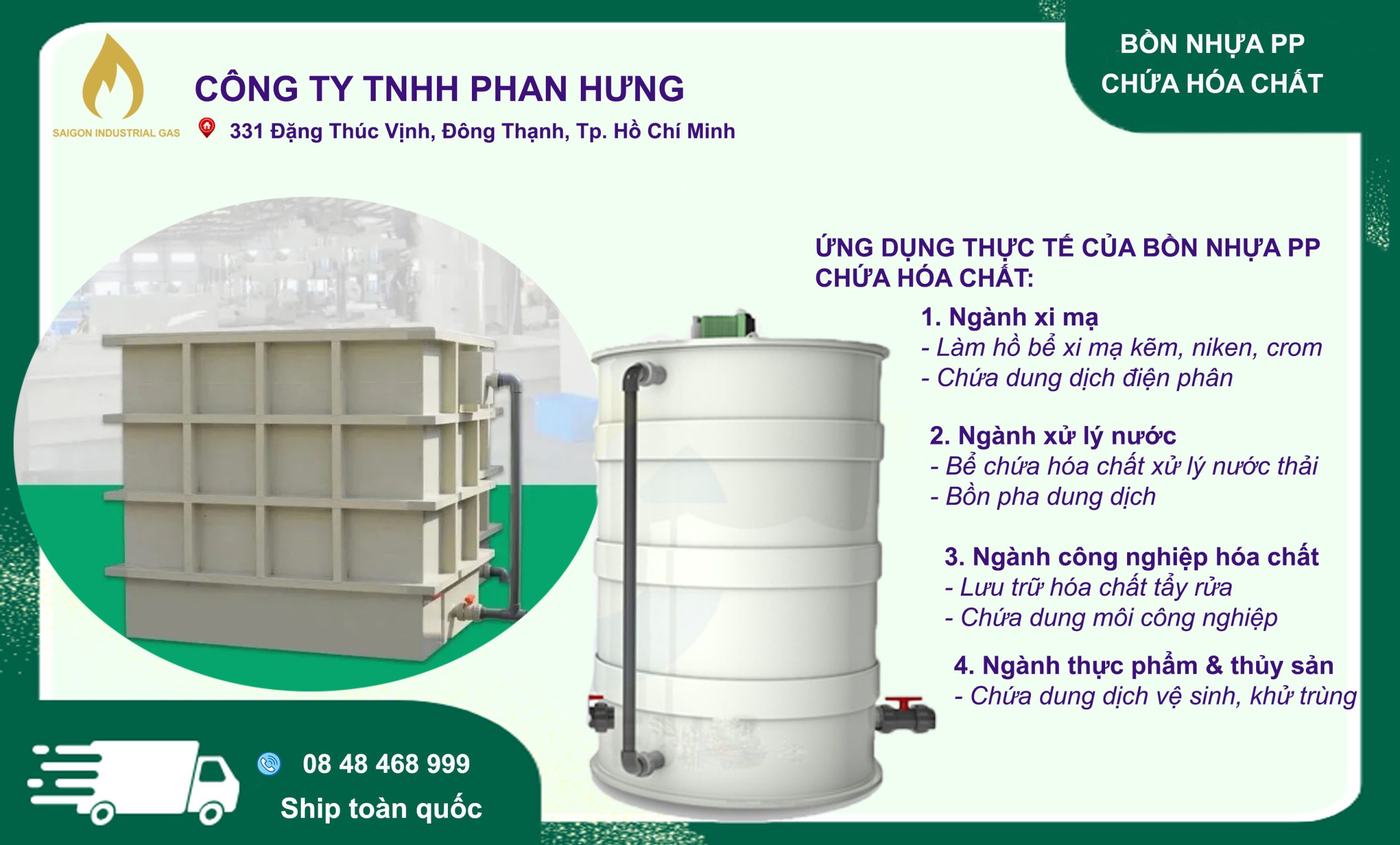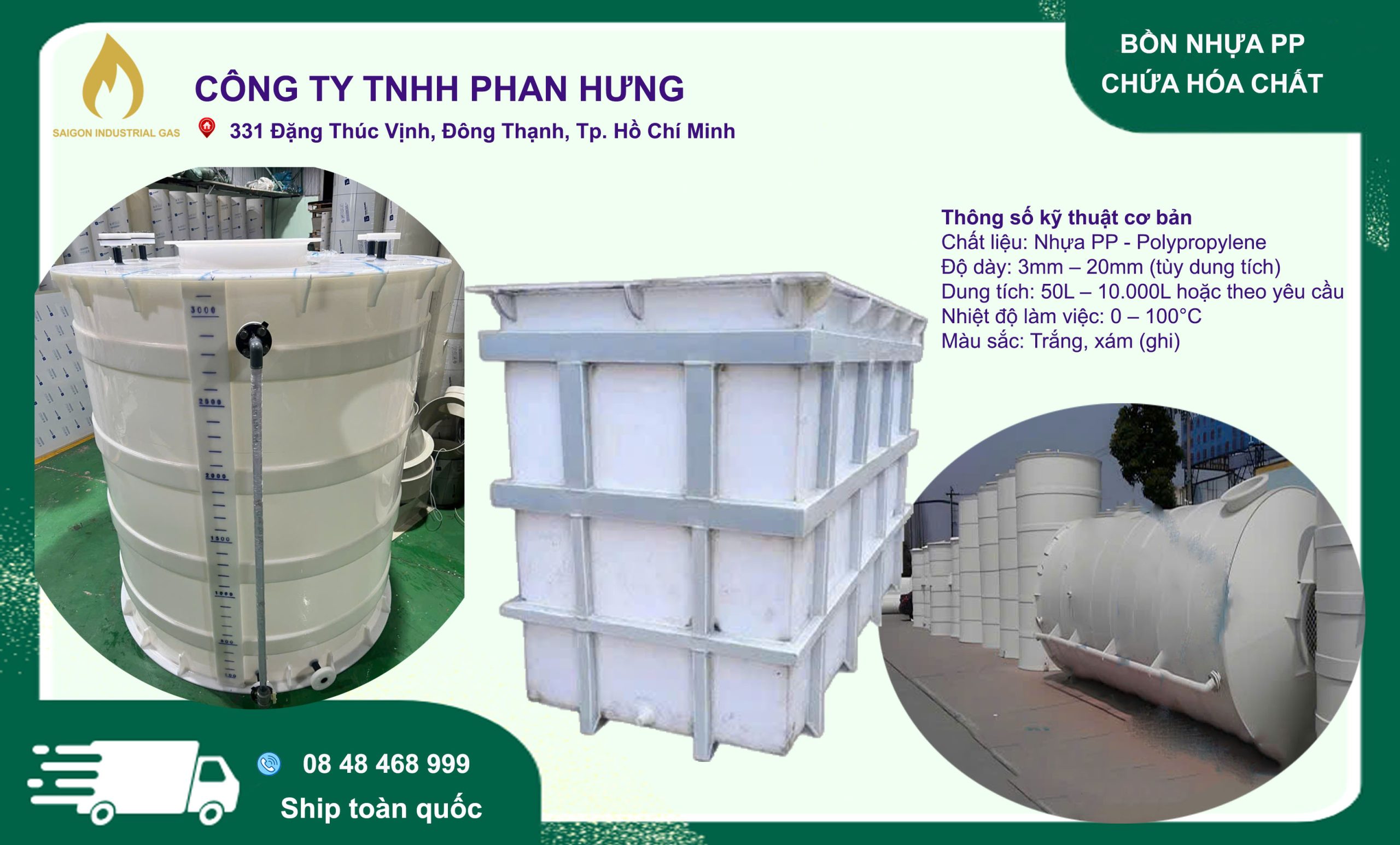 Quý khách đang tìm kiếm bồn chứa PP – Polypropylene chất lượng cao, chịu hóa chất tốt với mức giá hợp lý? Hãy liên hệ ngay với Phan Hưng để được tư vấn chi tiết và báo giá nhanh chóng.